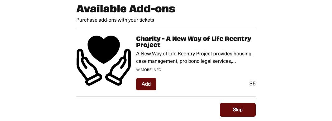 In addition to up-selling fans within the purchase flow, artists are using their stream's watch page to highlight merch on the day of the event. Since our platform allows artists to embed free HTML on their watch page, nearly all artists have been using this space to create an event "merch booth." This area typically links out to the artists' own merch site, so for this reason we don't have specific conversion stats to share. However, we've anecdotally seen this working really well for artists.